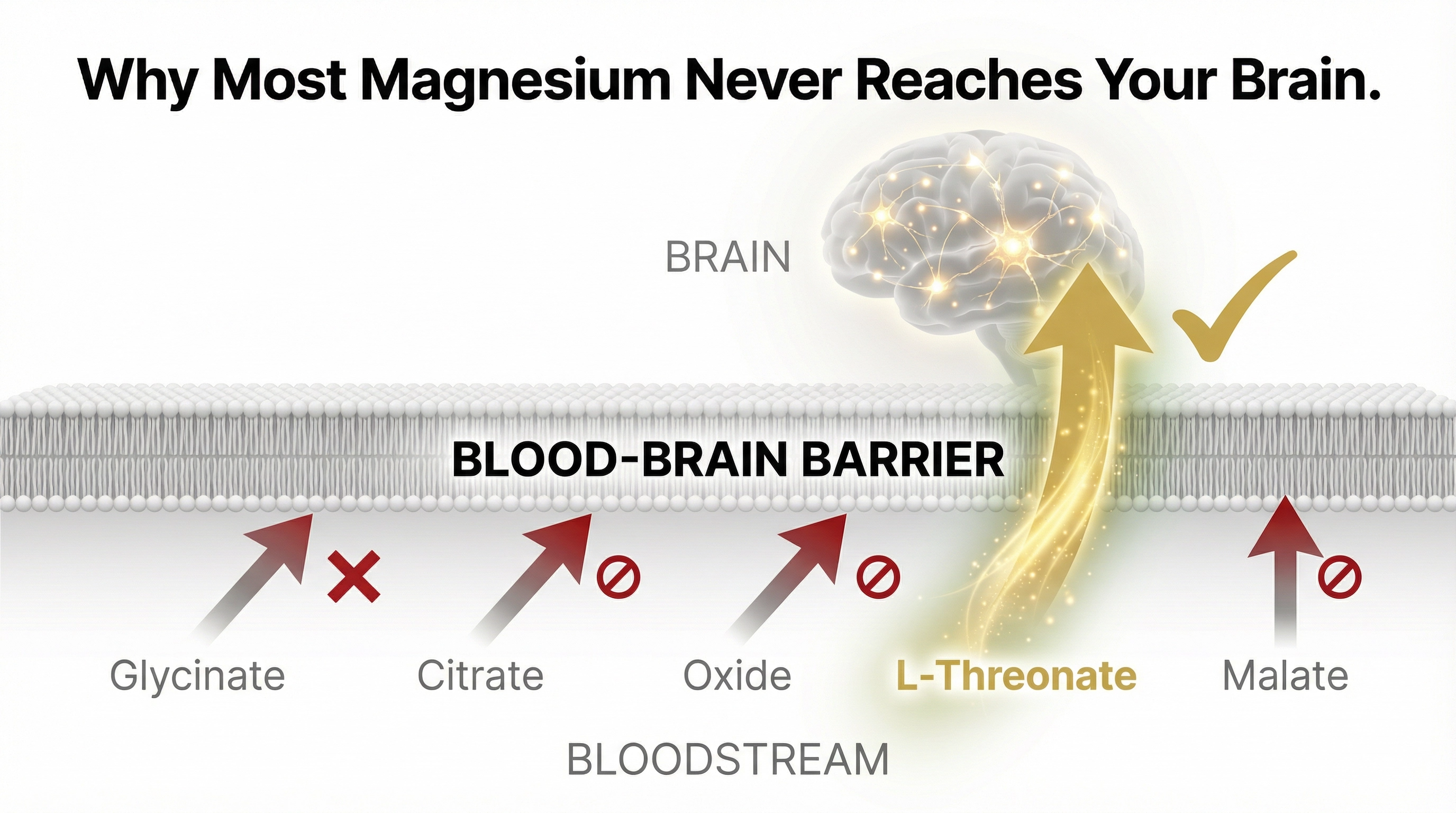 Your brain is protected by the blood-brain barrier, a selective membrane that blocks most substances from entering brain tissue. Standard magnesium forms get stopped at the gate.
