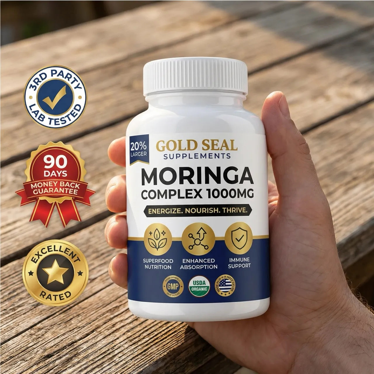 Rated the #1 Moringa Formula of 2026, our 6-Ingredient Synergy Stack™ supports sustained natural energy, promotes immune defense and detoxification, and delivers maximum antioxidant protection using a clinically synergized blend of maximum-potency Moringa extract and advanced absorption activators.